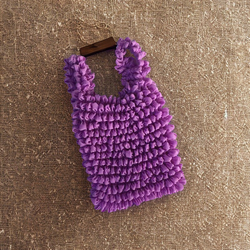 Compact when empty, this pleated bag instantly expands when you add items. The unique bubble texture stretches to accommodate whatever you need, then shrinks right back. One bag, infinite capacity.