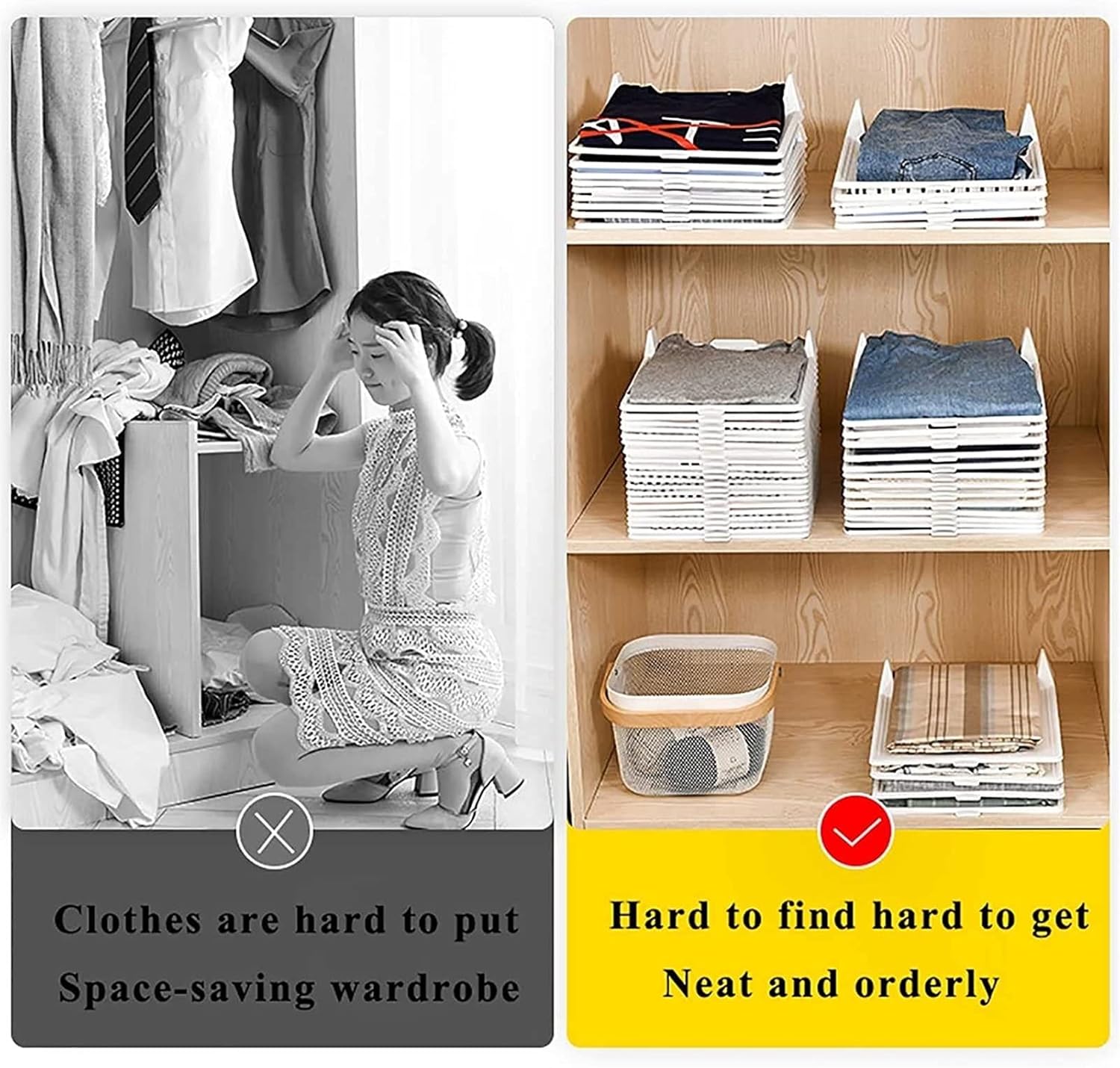 Maximizes storage space: Uniform folds stack tighter and neater — fit up to 50% more clothes in the same drawer or shelf space