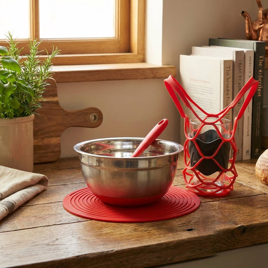 - 5-in-1 multifunctional design: Heat trivet, placemat, wine carrier, produce basket, and mouse pad — one product does it all
